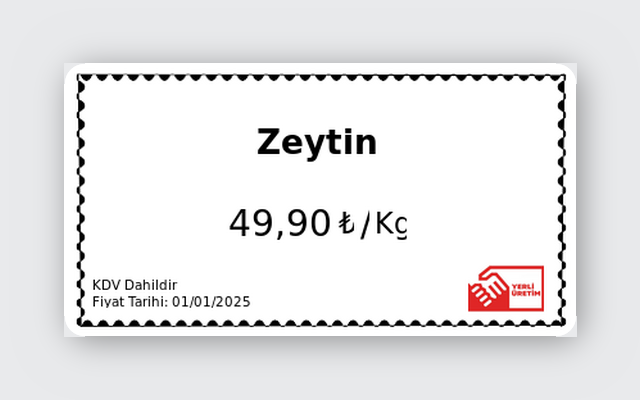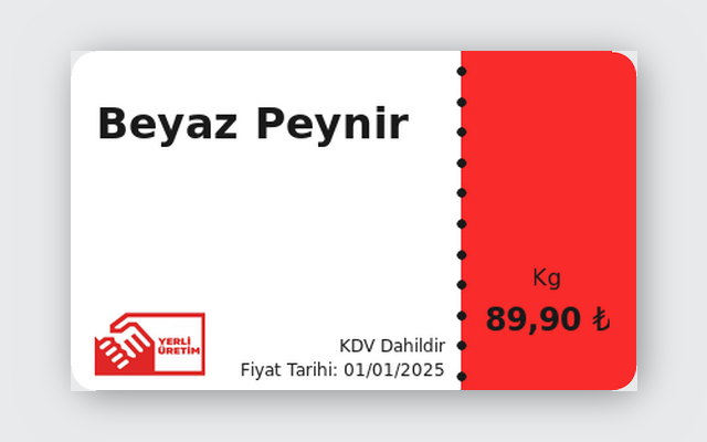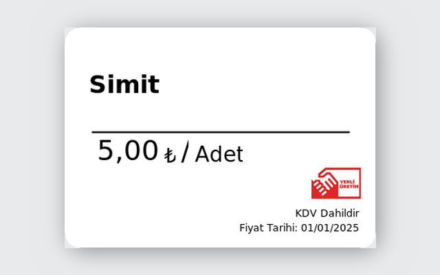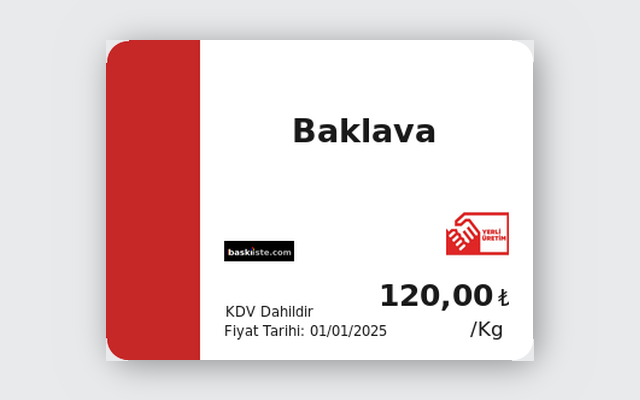 Fırın, kasap, manav — her vitrin için profesyonel etiket.